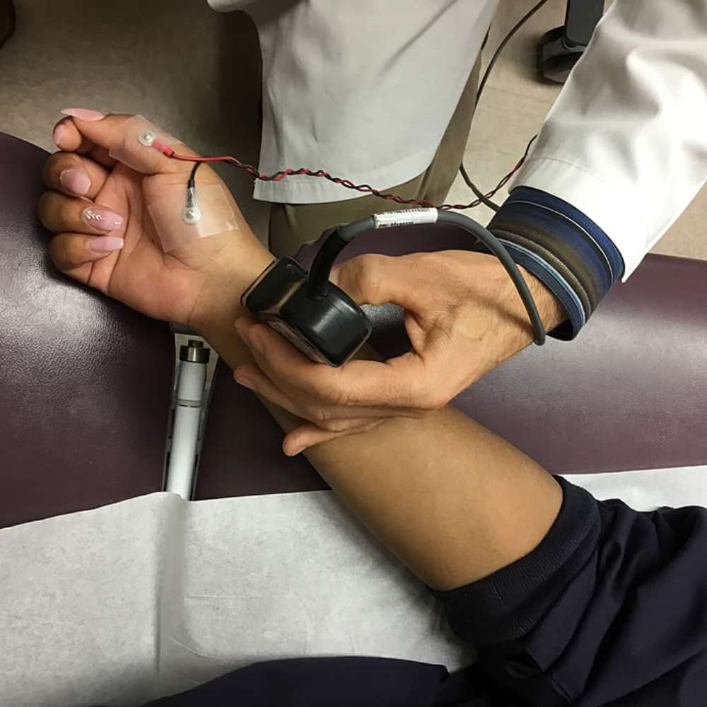 A Nerve Conduction Study (NCS) checks how well your nerves carry electrical signals. It’s a painless outpatient test where small electrodes are placed on your skin to deliver mild pulses and record nerve responses. This helps Dr. Bansal pinpoint nerve damage, compression, or irritation that may be causing numbness, weakness, or tingling in your arms or legs.
